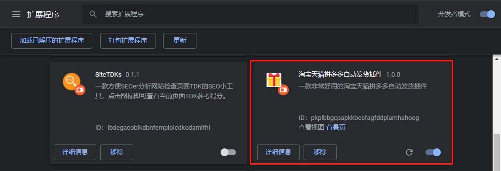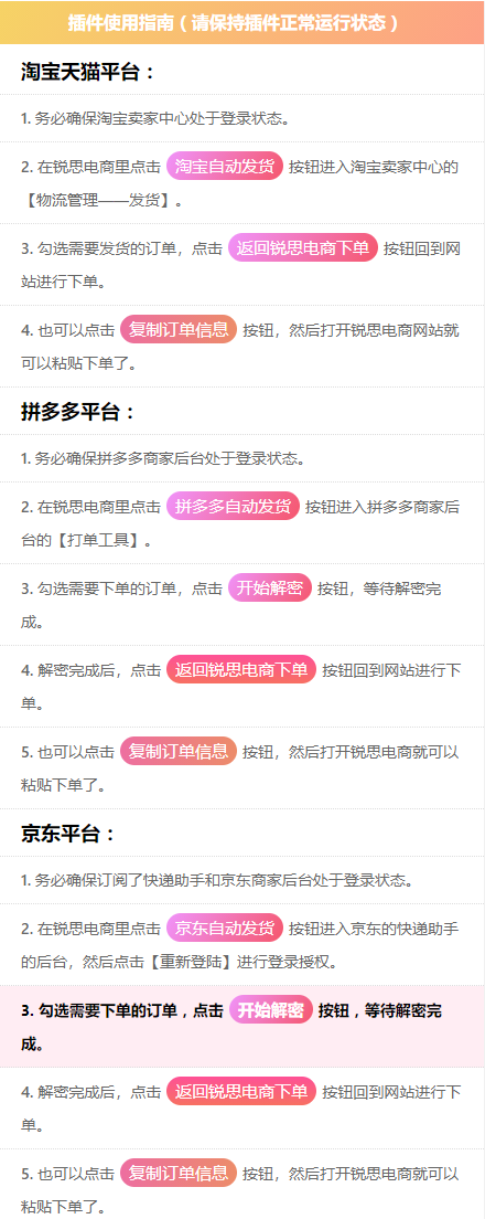 三、插件安装完成后,浏览器右上角就能看到插件,可以进行发货了,进入拼多多店铺 或者 淘宝店铺,选中要发货的单子,然后选择浏览器右侧的解密、再返回网站就能自动提取收件人信息地址。