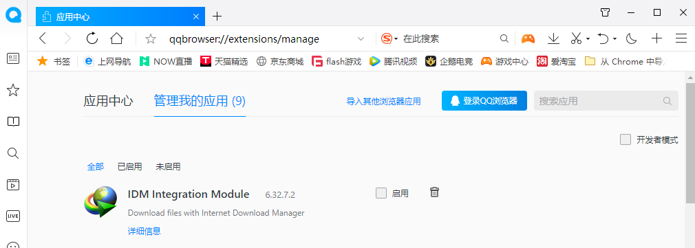 (1)打开QQ浏览器,然后在地址栏输入qqbrowser://extensions/manage 进入扩展程序列表。