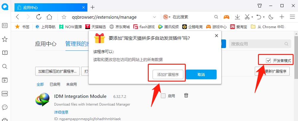 (2)勾选【开发者模式】,然后选择【加载已解压的扩展程序】选中刚才下载已解压的文件夹,点击【添加】即可安装成功。
